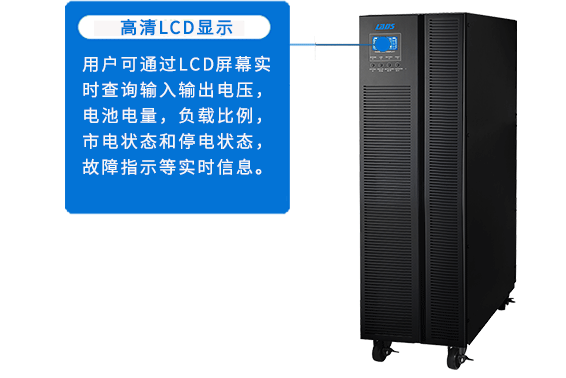 用戶可通過LCD屏幕實時查詢輸入輸出電壓,電池電量,負載比例,市電狀態(tài)和停電狀態(tài),故障指示等實時信息。